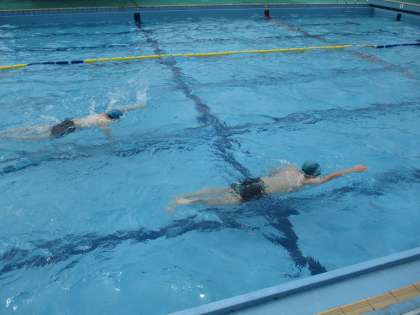 水が少し冷たく感じましたが,水なれから始まって,最後は25m・50mを自分の泳力に応じて選択して,精いっぱい泳ぎました