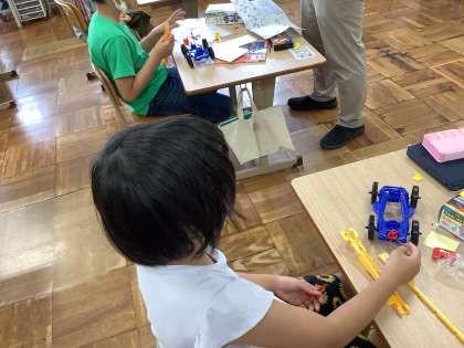 3年生は「ゴムや風の力」の学習で,ゴムで動く車をつくりました。実際に動かして楽しく活動しました。次回はこの車を使って実験をします。
