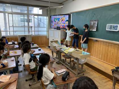 今日は,給食委員会の6年生が,「給食番長」の読み聞かせをしてくれました。