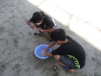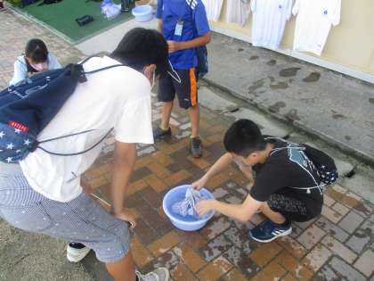 家庭科の授業では,手洗いで洗濯をする実習を行いました