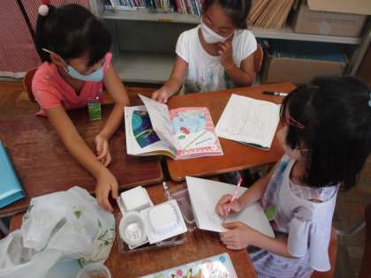 生活科の「あそんで ためして くふうして」の学習で,動くおもちゃを作るために,図書館の本を使って,調べ学習をしました。子どもたちはとても楽しそうに本を読んでいました。「このおもちゃ作りたい!おもしろそう!」「これなら作れそうだね。」と言って,本の題名やページをメモしている子もいました。本での調べ学習が上手になりました。どんなおもちゃができるのか,楽しみです。