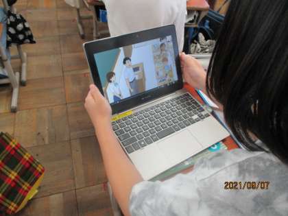 自分の力に合わせて,「字幕なし」・「英語字幕」・「日本語字幕」と使い分けて,英語を聞き取る練習を行いました。何度も,聞きなおしや動画を止めたり,進めたりできることから,とてもやりやすかった。これだと,苦手な外国語も解消できそう!という意見がたくさん出てきました。