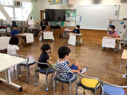 今日の生活単元学習では,お店屋さんの本番に向けて練習をしました。事前に作成したお店の看板や商品カードを使い,お店屋さん役とお客さん役に分かれて取り組みました。全力で声を出しお客さんを呼び込むお店屋さん,にこにこしながらいろんなお店に出向くお客さん,みんなとても楽しそうでした。