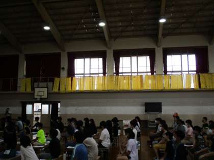 夢と希望をもち、その実現に向け日々の努力を続けることの大切さを、ラグビーと向き合ってきた学生時代から現在に至るまでのご自身の経験を中心に貴重なお話しをしていただきました。たいへん暑い中でしたが、一生懸命に藤田選手のお話を聞いていた6年生の姿が印象的でした。