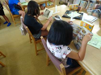 学校図書館へ行き,読書を楽しみました。お気に入りの一冊を見つけて,夢中で読んでいる姿が見られました。もうすぐ読書の秋。ますます本に親しんでいってほしいです。