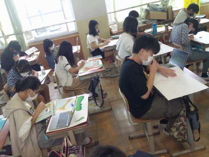 お話の絵を,思い思いに,自由に想像しながら描いています。色とりどりの素晴らしい作品ができあがってきています。