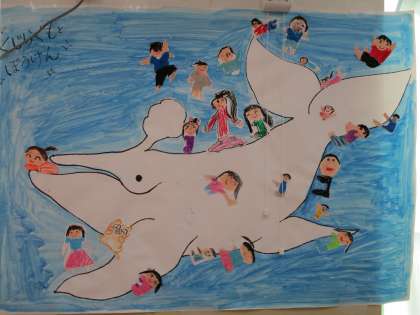 自分たちがくじらぐもに乗っている様子を想像して,学級の絵を作りました。