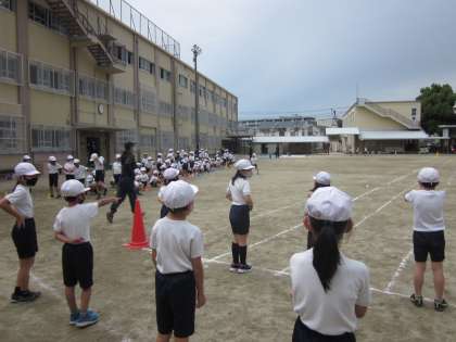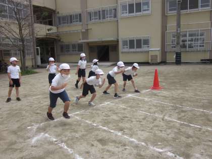 50m走の練習をしました。何番目の何コースを誰と走るのかを把握し,競技の流れをつかむための練習でしたが,さすが2年目!動きがスムーズで驚きました。凛々しくスタートラインに立ち,一斉に走り出す姿が素敵でした。