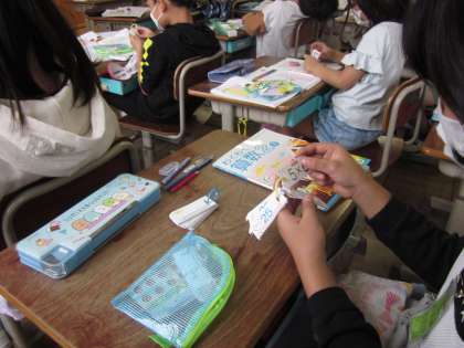 みんなが楽しみにしていた九九の学習が始まりました。九九カードを使って,すらすらと正しい九九が言えるように,練習を繰り返しています。5×1から順に言う「上がり九九」が言えるようになったら,5×9から逆に言う「下がり九九」,それも言えるようになったらバラバラでもいえるように頑張っています。