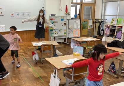 ALTの先生と一緒に,体を動かしながら楽しく活動しました。
