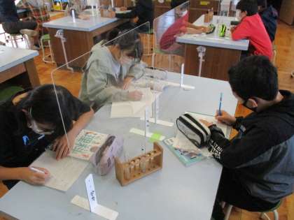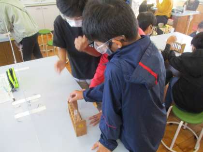 理科の学習では、塩酸に金属がどれだけ溶けるのか実験をしました