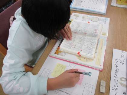 わからない言葉は進んで国語辞典を使って調べる姿が見られました。