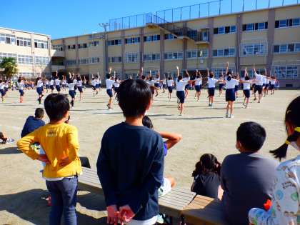 6年生が、体育発表会でおこなう演技を1〜5年生に見せてくれました。6年生の気持ちがこもった演技に自然と大きな拍手があふれていました。3年後、自分たちも下級生にこの姿を見せられるといいですね。