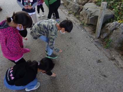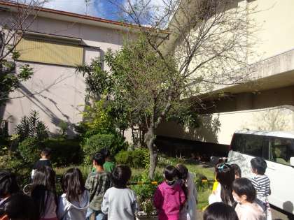 秋といえばどんなものがあるのか。夏と違うところはどこかを確認し、校内の探検に行きました。