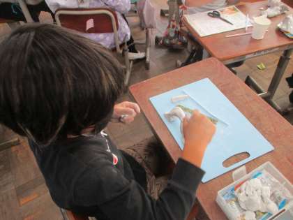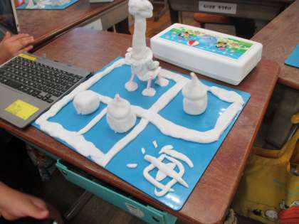『ねん土マイタウン』の学習では,どんな町に住んでみたいか想像し,想像した町を粘土で作成しました。