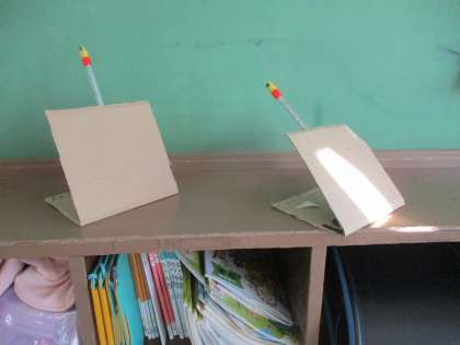 複数枚鏡を用意し,明るさを確かめたり,温度計で時間ごとの温度を測ったりして実験しました。