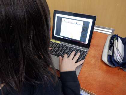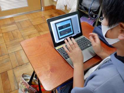 普段の授業でもタブレットを活用して学習を進めています。より効果的にタブレットを学習で使うことができるように,タイピングが速くなる練習を頑張っています。
