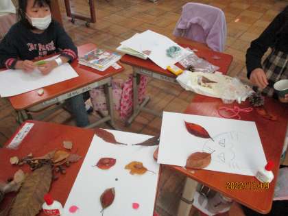 秋のどんぐりや松ぼっくり,落ち葉などを使って,