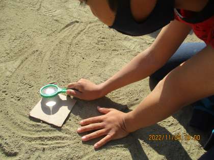 虫眼鏡で太陽を見てはいけないと指導はしてましたが,実際どうなるのかを体感している子どもが少なかったので,興味を持って実験することができました。