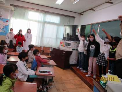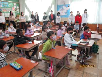 はじめに,6年生が教室に来てくれ,