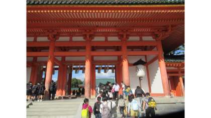 社会科見学の最後に平安神宮を見学しました。先日校長先生にお話いただいたことを思い出しながら子どもたちは見学していました。朱色の見事な建物に子どもたちは驚いていました。多くの子が手を合わせて願い事をしていました。