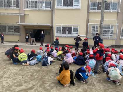 待ちに待った遠足の日。天候にも恵まれ,たくさんの秋を見つけることができました。1年生全員で行動するのは体育発表会以来初めてでしたが,緊張する様子もなく,とても楽しんで活動している子どもたちでした。