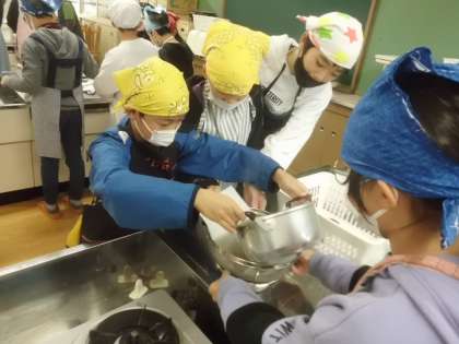 などと友達と話しながら調理を楽しんでいました。