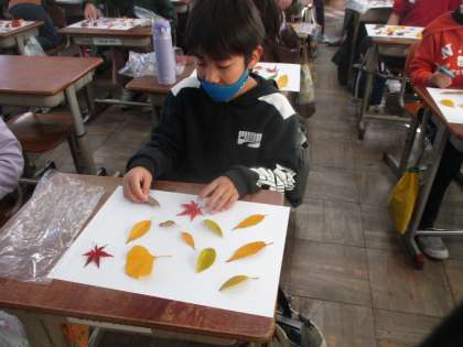 種類ごとに分けたり,大きさ順に並べたり,風に吹かれているようすを表現したりとたくさんの工夫が見られました。