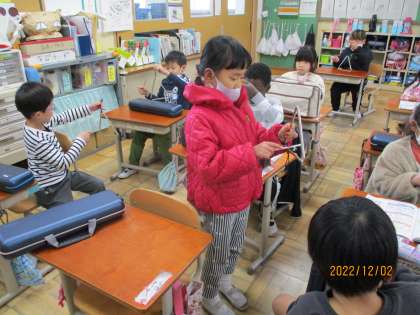 楽器の鳴らし方を見つけたり,曲に合わせて鳴らしたりと