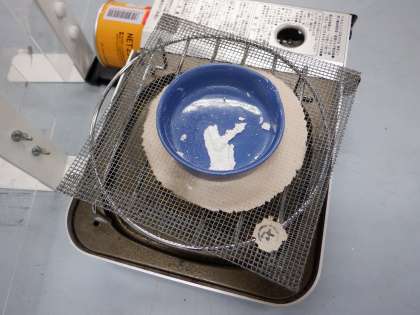 理科の学習で,食塩とミョウバンを溶かしたろ液を熱して,食塩とミョウバンを取り出す実験をしました。安全に気を付けて実験をし,実験結果をまとめました。
