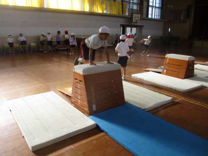 今日は,開脚跳び以外にも抱え込み跳びや台上前転の練習をしました。