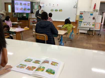 外国語活動の時間に,簡単な英語をつかって道案内をする学習をしています。