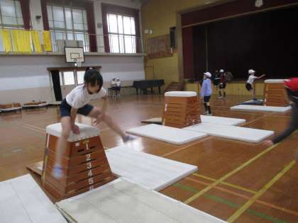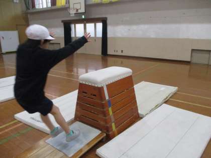 今日は,手の着く位置をとびばこの奥側につくこと,踏切板を力強く蹴ることを意識して活動しました。