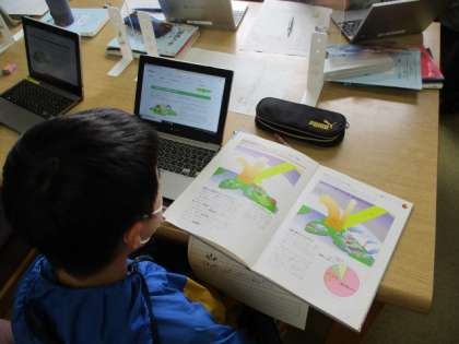この日の学習は,地球温暖化の仕組みを,本とインターネットを使って調べました。