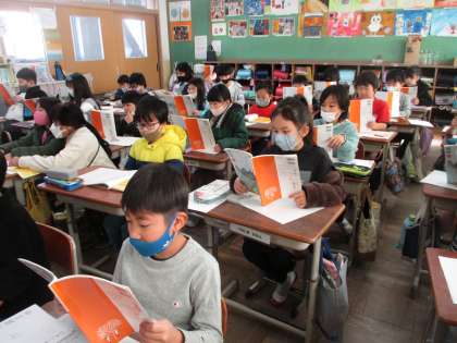 今日は国語の学習で,三年とうげを読み,お話の組み立てについて考えました。
