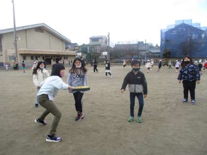 今日は,休み時間にフリスビードッジやドッジボールをして遊びました。