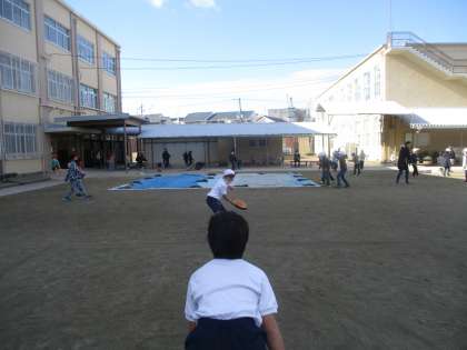昨日よりも寒かったこともあり,今日は外へ行く子も少なかったですが,運動場では,ドッジボールやドッジビーをして遊んでいました。