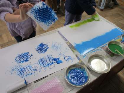 プチプチや段ボールから出る形に楽しみながら,取り組んでいます。