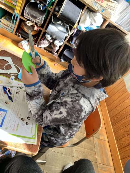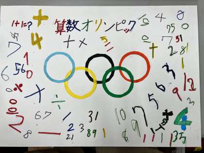 オリンピックのシンボルマークを色紙とコンパスを使って作りました。