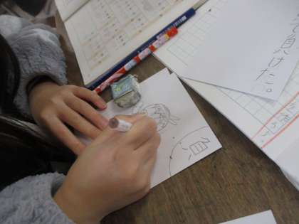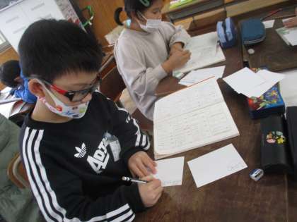 今日は国語科「カンジーはかせの音訓かるた」の学習で,かるた作りをしました。