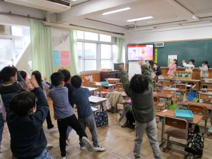 朝の会が終わったら,パーティー係がダンスをしてくれました。