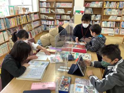 それぞれのグループテーマにそって,メンバーで調べ学習に取り組んでいます。