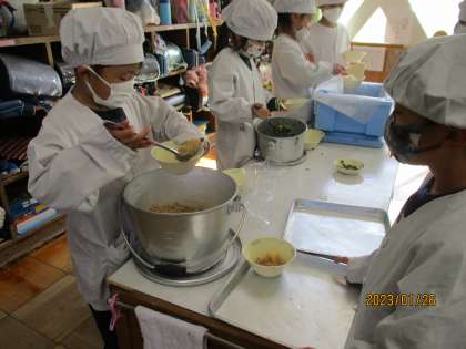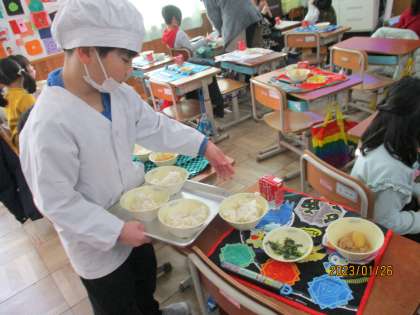 給食当番の仕事にも慣れて,