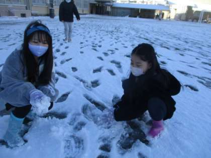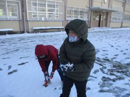 少しの時間ですが,せっかく雪が降ったので,雪遊びをしました。