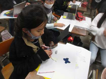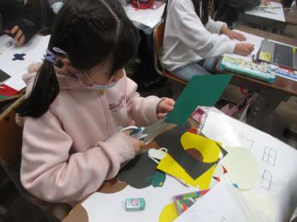 場所によっては,細かくシールを切る必要があるところが難しいですが,子どもたちも集中して取り組んでいます。