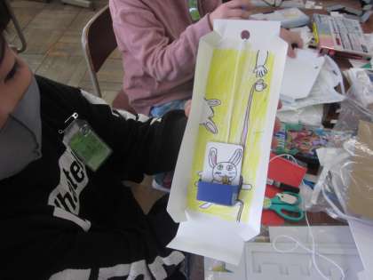 「どんな友達が、どんなお家に住んでいるかな」と想像を膨らませて、おうちづくりに取り組んでいます。エレベーターがあったり、池があったり、「こんな家に住みたいな」と思える仕組みがいっぱいです。