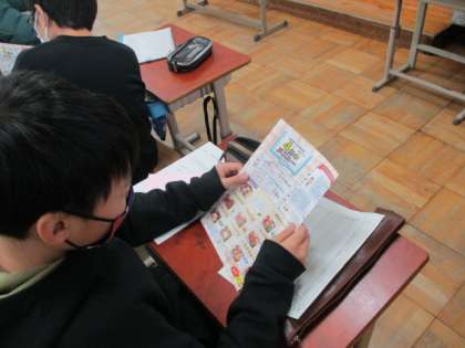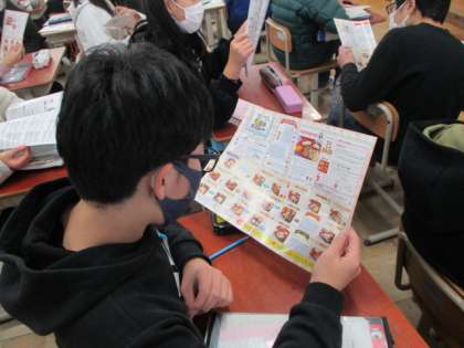 栄養教諭の金先生と一緒に学習した「中学校給食」。