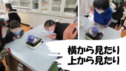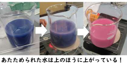 示温インクを用いて,温まった水がどのように広がるのか,見て学びました。