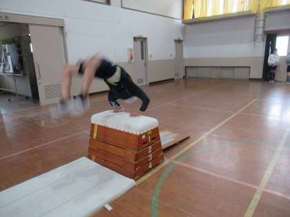 少しずつ跳べるようになってきて,新たな技に挑戦する子も出てきました。
