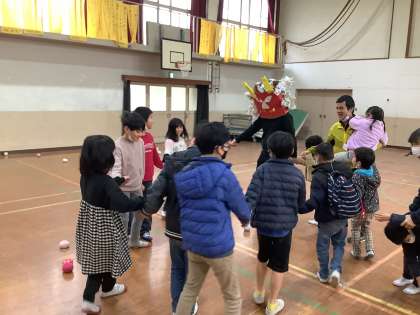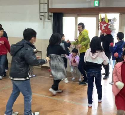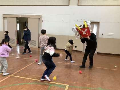楽しく活動しているくすのき学級に鬼が現れました。